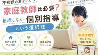 不登校の子に家庭教師は必要?実際にオンライン家庭教師を使った経験から、合う子・合わない子の違いを解説。無理なく続けられる個別指導や出席扱いの仕組みもわかります。