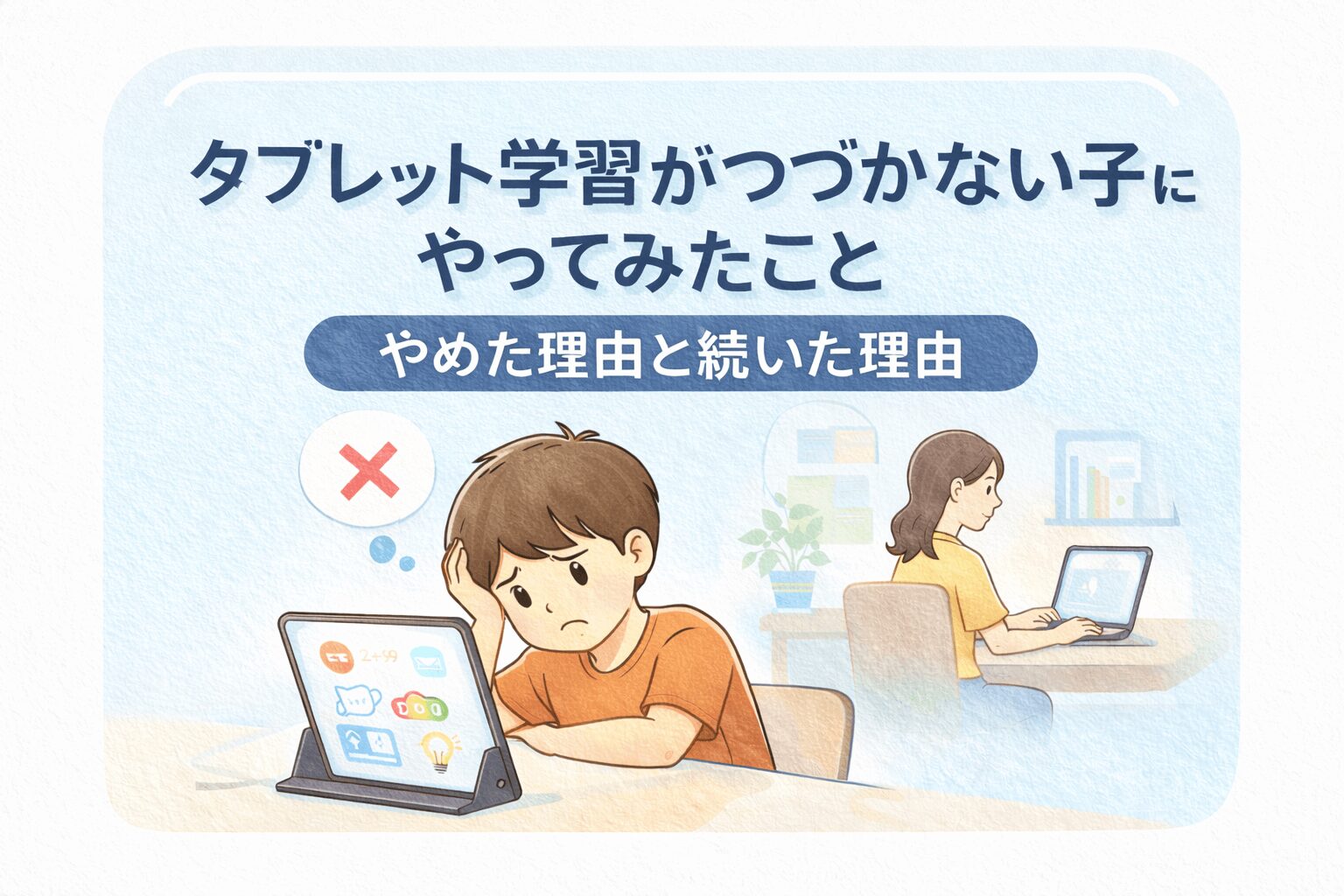 この記事では、タブレット学習が続かなかった理由と、その後わが家がやってみたことを正直にまとめています。「うちの子だけじゃないんだ」と思ってもらえたら、それだけで十分です。